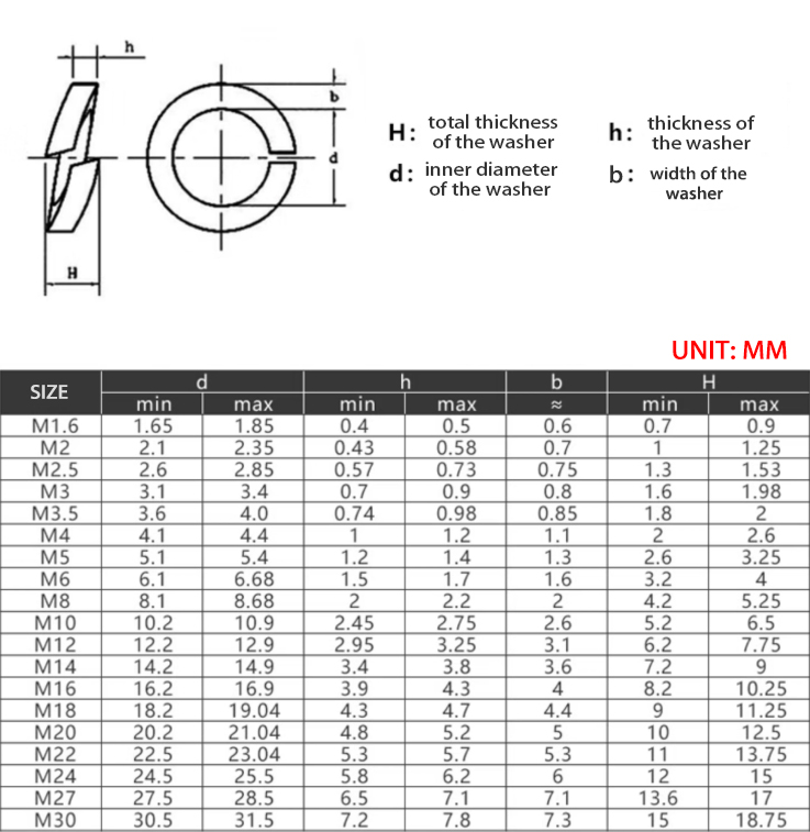 เครื่องซักผ้าสปริงทองเหลือง- เครื่องซักผ้าฤดูใบไม้ผลิเป็นเครื่องซักผ้าที่ทำจากทองเหลืองเป็นส่วนใหญ่ มันเป็นสปริงทนต่อการกัดกร่อนและมักจะนำไฟฟ้า มักจะเป็นแหวนที่มีช่องเปิดแยก การแยกให้ความยืดหยุ่นสำหรับการประกอบและช่วยป้องกันการคลายโดยการสั่นสะเทือนช็อตหรือการเปลี่ยนแปลงอุณหภูมิ