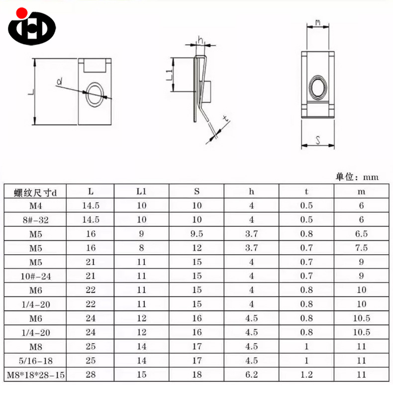 คาร์บอนเหล็กคลิปคลิปน็อตเป็นตัวยึดที่เป็นนวัตกรรมที่รวมฟังก์ชั่นของน็อตและสแน็ปสปริง โดยทั่วไปแล้วจะทำจากวัสดุโลหะและมีส่วนน็อตที่มีเกลียวภายในและโครงสร้างสปริงสแน็ป การออกแบบที่ไม่เหมือนใครนี้ช่วยให้น็อตสแน็ปสปริงสามารถยึดสลักเกลียวได้อย่างแน่นหนาหลังจากการติดตั้งให้กำลังล็อคเพิ่มเติมป้องกันไม่ให้น็อตคลายและทำให้มั่นใจได้ถึงความเสถียรของการเชื่อมต่อ