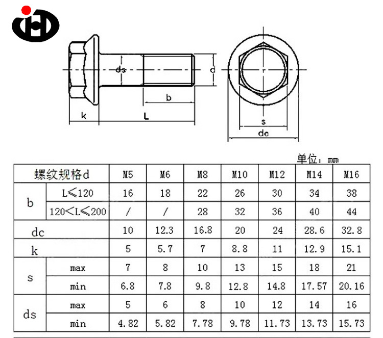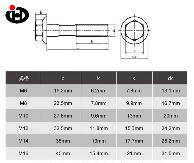 | ชื่อ | สลักเกลียวหน้าแปลน Hex มาตรฐานเต็มรูปแบบ |