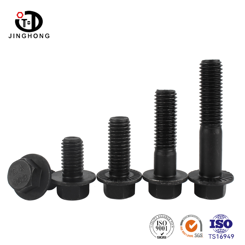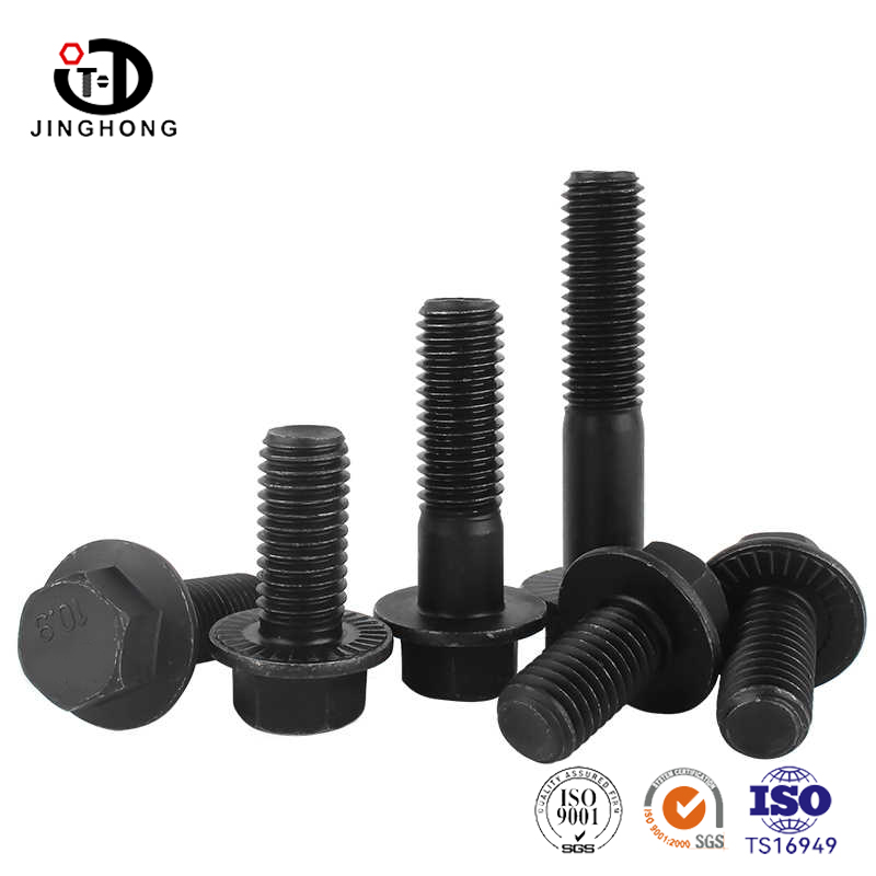 สลักเกลียว ttensile สูงของหน้าแปลนสูงเป็นสลักเกลียวที่มีความแข็งแรงสูงซึ่งรวมหัวหกเหลี่ยมและหน้าแปลน การออกแบบหัวหกเหลี่ยมช่วยให้การดำเนินการกระชับโดยใช้เครื่องมือเช่นประแจหรือไขควงในขณะที่หน้าแปลนเพิ่มพื้นที่สัมผัสระหว่างสลักเกลียวและส่วนที่เชื่อมต่อกันกระจายแรงบนสลักเกลียวและปรับปรุงความเสถียรและการผนึกของส่วนที่เชื่อมต่อ