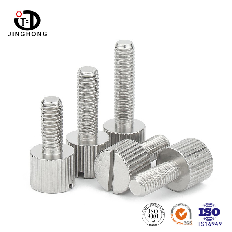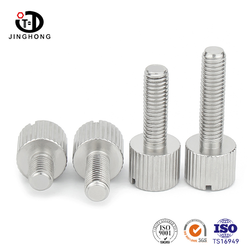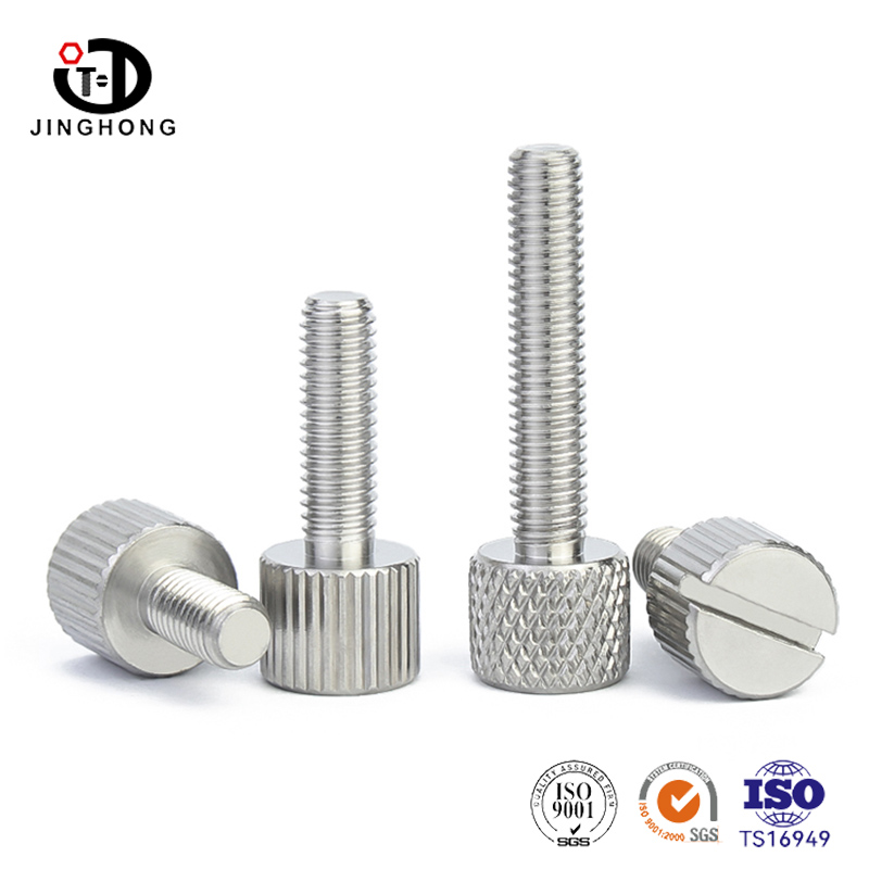 สกรูหัวแม่มือหัวแบนขึ้นลายมีจำหน่ายในสแตนเลสและวัสดุอื่นๆ โดยมีความทนทานต่อการกัดกร่อนและมีความแข็งแรงสูง ข้อดีของสกรูหัวแม่มือหัวแบนแบบมีปุ่มคือหัวแบนขนาดเล็กและหัวกลมแบบมีปุ่ม หัวแบนวางบนพื้นผิวเรียบและเรียบ หัวกลมแบบมีปุ่มสามารถบิดได้ง่ายด้วยมือเพื่อให้กระชับมือ เกลียวก็แม่นยำเช่นกัน สกรูเหล่านี้มักเรียกกันว่าสกรูอิเล็กทรอนิกส์ และยังใช้ในเครื่องจักร เฟอร์นิเจอร์ และการใช้งานอื่นๆ อีกมากมาย
