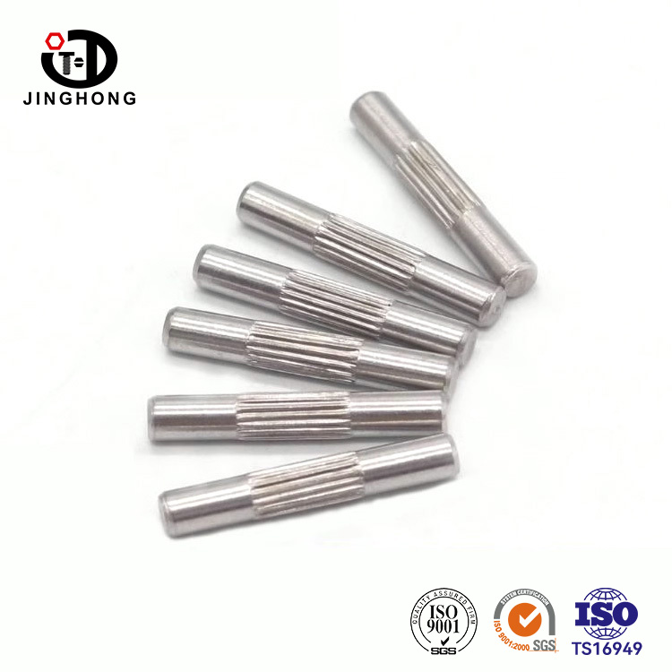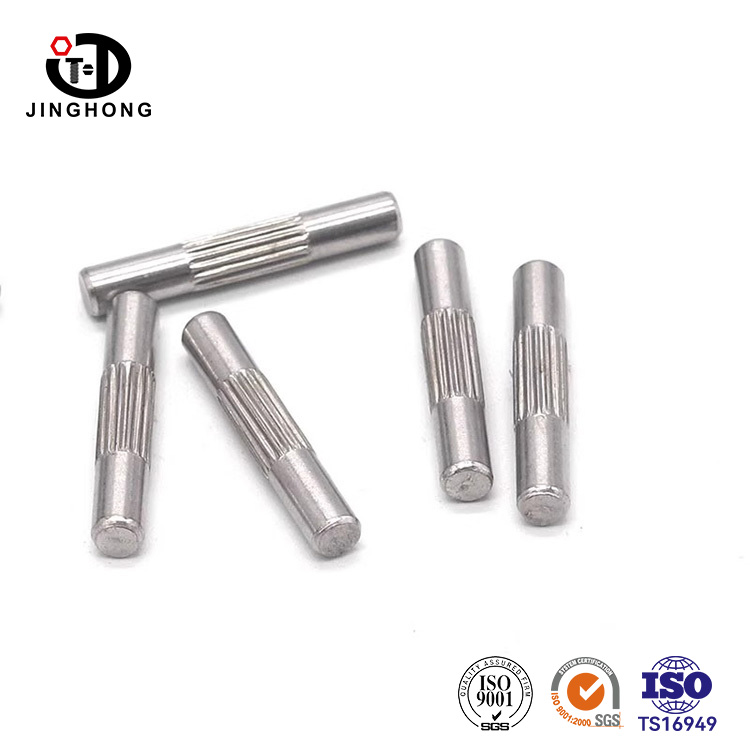 หมุดขึ้นลายมีพื้นผิวที่มีสันหรือร่องนูนขึ้น ทำให้ได้พื้นผิวที่มีพื้นผิวหรือเป็นลาย พื้นผิวนี้ช่วยเพิ่มการยึดเกาะและช่วยให้ผู้ใช้จับหมุดได้ง่ายขึ้น โดยเฉพาะอย่างยิ่งในการใช้งานที่การยึดเกาะที่มั่นคงเป็นสิ่งสำคัญ วัตถุประสงค์หลักของพื้นผิวที่มีปุ่มคือเพื่อปรับปรุงการยึดเกาะ คุณสมบัตินี้มีประโยชน์เมื่อต้องใช้ความชำนาญแบบแมนนวล หรือเมื่อจำเป็นต้องจัดการพินในสภาวะที่พื้นผิวเรียบอาจยากต่อการจัดการ พินขึ้นลายเป็นส่วนประกอบอเนกประสงค์ที่ใช้ในการใช้งานที่หลากหลาย เช่น เครื่องจักร อิเล็กทรอนิกส์ และอุตสาหกรรมยานยนต์ สามารถใช้เป็นตัวยึด หมุดจัดตำแหน่ง หรือตัวเชื่อมต่อประเภทอื่นๆ หมุดขึ้นลายสามารถทำจากวัสดุหลากหลายชนิด รวมถึงโลหะ เช่น เหล็ก อลูมิเนียม หรือทองเหลือง การเลือกใช้วัสดุขึ้นอยู่กับข้อกำหนดเฉพาะของการใช้งาน โดยพิจารณาจากปัจจัยต่างๆ เช่น ความแข็งแรง ความต้านทานการกัดกร่อน และค่าการนำไฟฟ้า การออกแบบและขนาดของหมุดเกลียวสามารถปรับแต่งได้ขึ้นอยู่กับการใช้งานเฉพาะและข้อกำหนดทางวิศวกรรม เพื่อให้แน่ใจว่าหมุดเกลียวมีคุณสมบัติตรงตามความต้องการด้านประสิทธิภาพและฟังก์ชันการใช้งานตามวัตถุประสงค์ หมุดเกลียวมีเส้นผ่านศูนย์กลางและความยาวต่างกัน ช่วยให้มีความยืดหยุ่นในการตอบสนองความต้องการด้านมิติเฉพาะของการใช้งาน