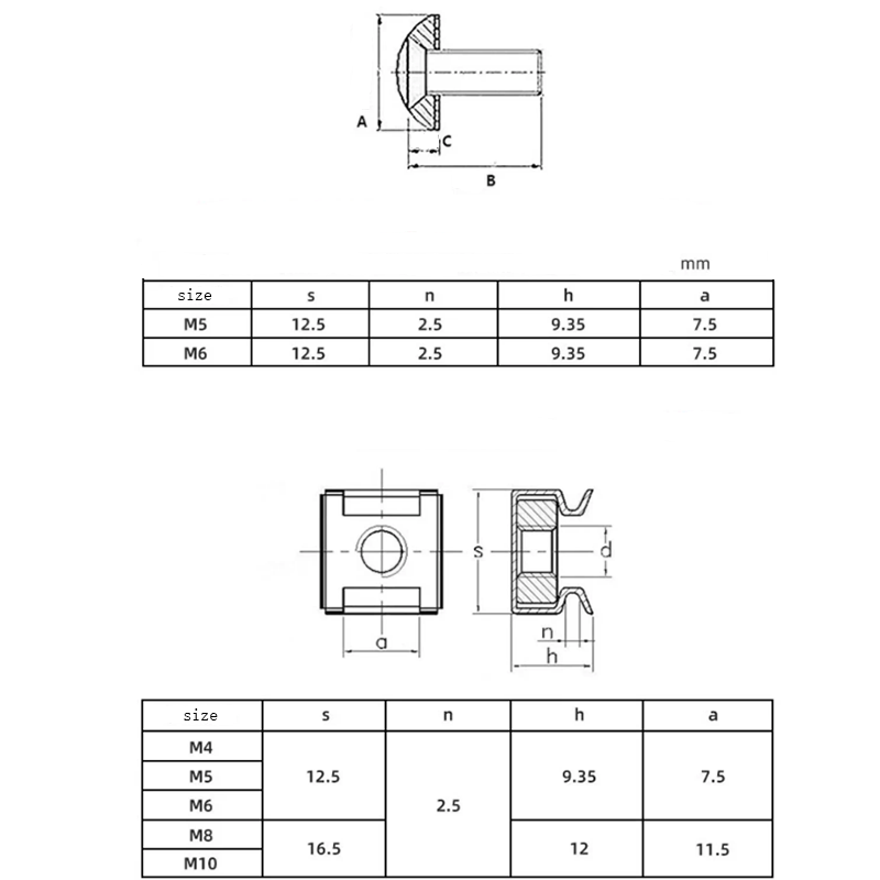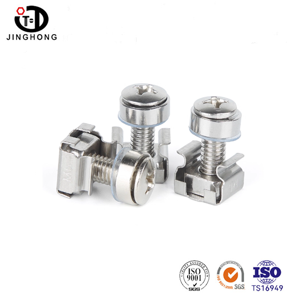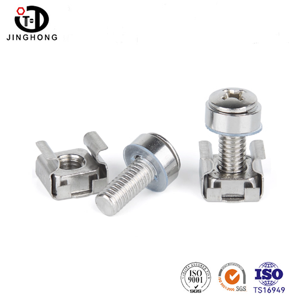 สกรูหัวมงกุฏที่มีการออกแบบเม็ดมะยมที่เป็นเอกลักษณ์ มีทั้งการตกแต่งและการใช้งาน และเหมาะสำหรับสถานการณ์ที่เปิดโล่ง (เช่น โครงการเฟอร์นิเจอร์และของตกแต่ง) น็อตกรงถูกยึดเข้ากับตำแหน่งรูของแผ่นโดยใช้สแน็ปอิน