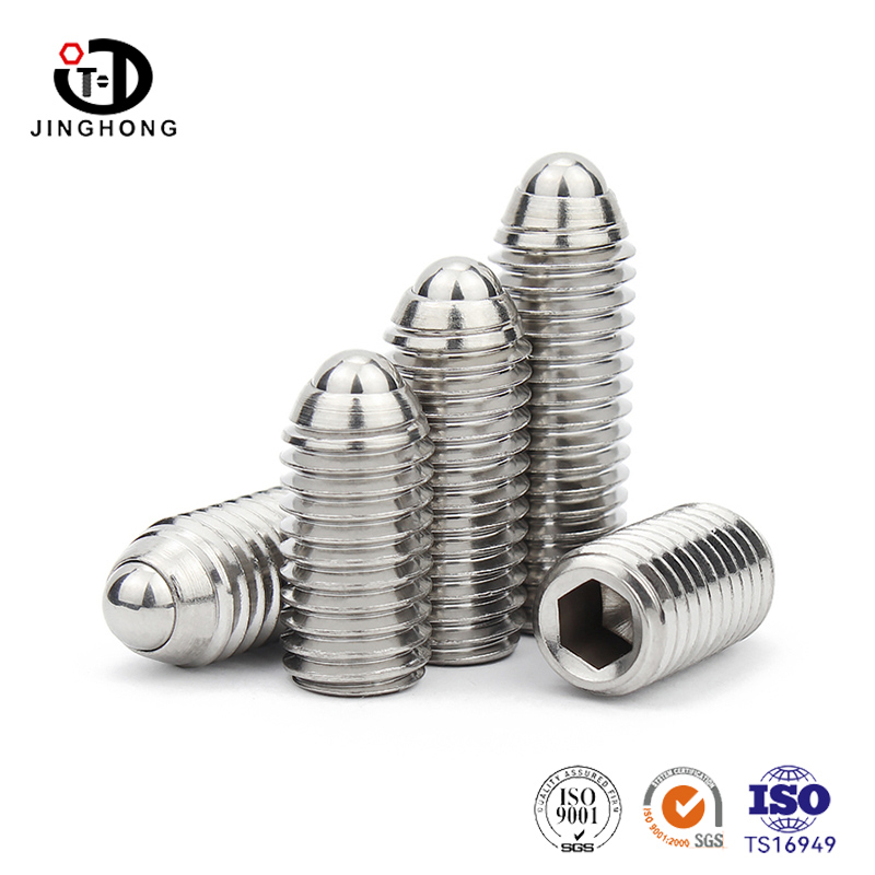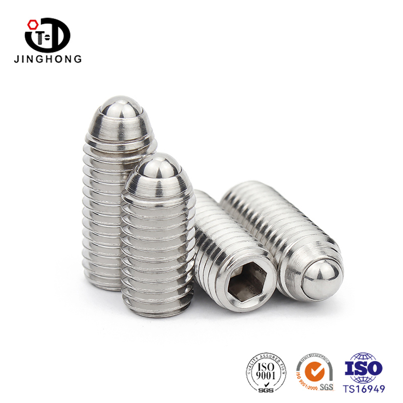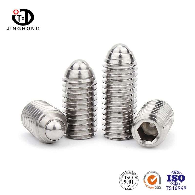 สกรูลูกสูบลูกสูบสแตนเลสสกรูเป็นสกรูที่ดีพร้อมลูกบอลสปริงโหลดที่ปลายซึ่งทำให้ง่ายต่อการตั้งค่าและยึดพื้นผิวที่ทำจากพื้นผิวและเกลียวทำความสะอาด พวกเขาทำจากสแตนเลสคุณภาพสูงสุดและมีความต้านทานและความแข็งแรงของการกัดกร่อนที่ดี สิ่งเหล่านี้ใช้ในเครื่องจักรที่ต้องปรับบ่อยหรือต้องมีการจัดตำแหน่งเฉพาะ