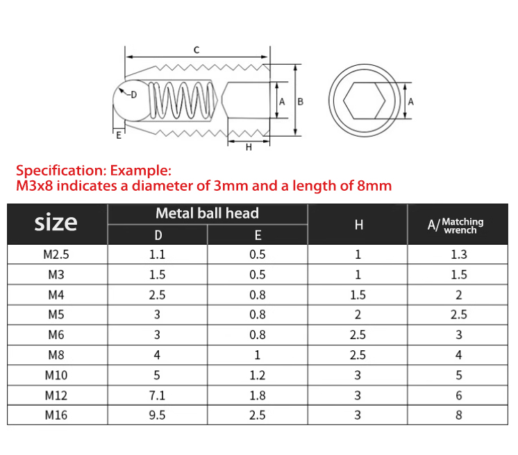 ไฮไลต์ของสกรูลูกสูบลูกบอลสเตนเลสสตีลนี้คือการออกแบบลูกบอลสปริงที่โหลด หัวลูกสามารถหดและขยายโดยฤดูใบไม้ผลิจากนั้นจะถูกล็อคเข้าตำแหน่งอย่างรวดเร็ว สิ่งนี้ช่วยเพิ่มประสิทธิภาพของการติดตั้งอย่างมากและให้การเชื่อมต่อที่ทนทาน