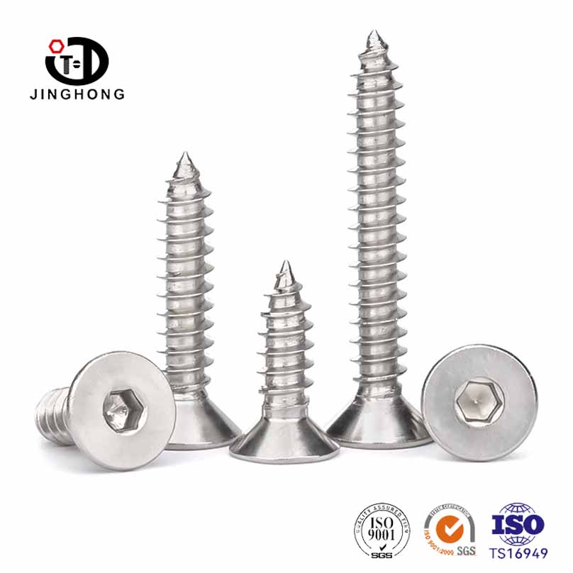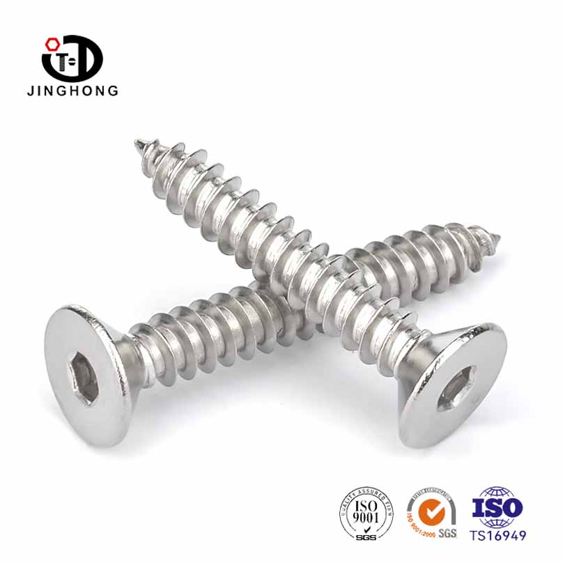 สแตนเลสสตีลหัวแบน hey -socket cap การแตะสกรูสกรูสแตนเลสหัวแบนหัวหกสิบหกฝาปิดการออกแบบสกรูสกรูตัวเองให้ความสามารถในการส่งแรงบิดขนาดใหญ่สามารถทนต่อช่วงเวลาที่กระชับขนาดใหญ่เพื่อให้แน่ใจว่าผลของสกรูแน่น