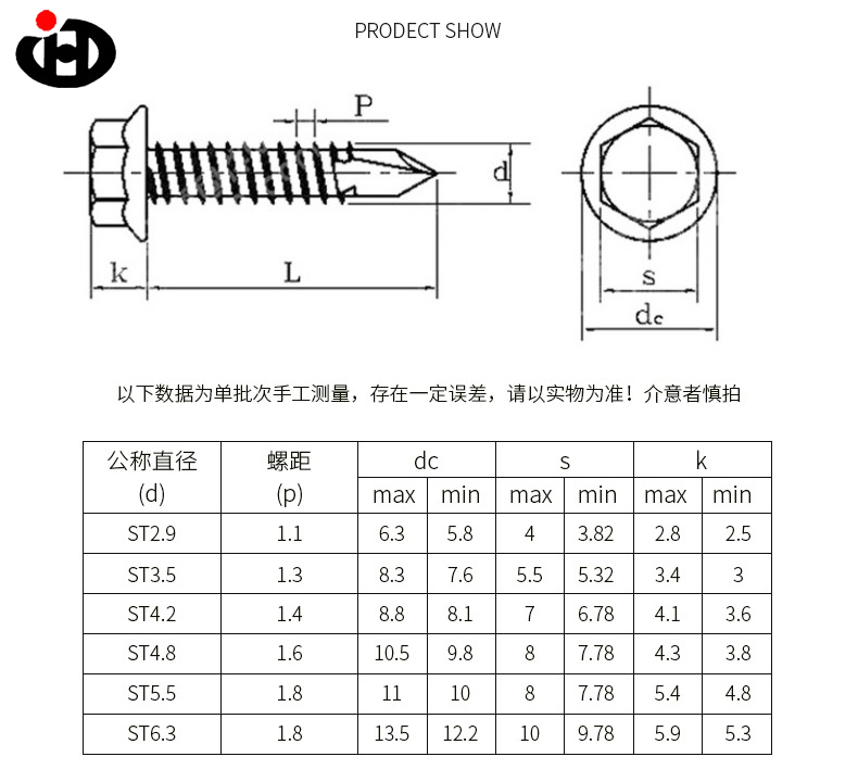 ขนาด | ST2.9-ST6.3METC |