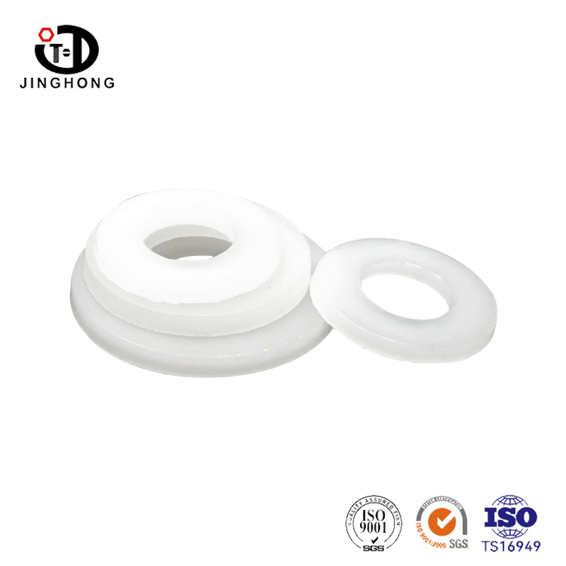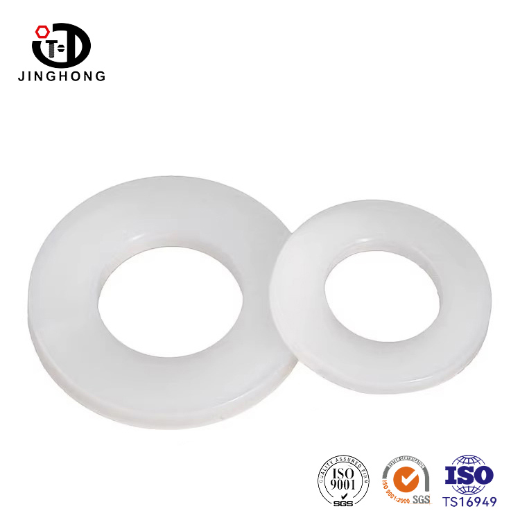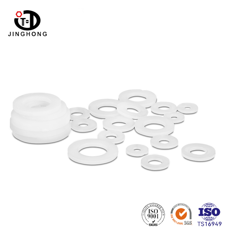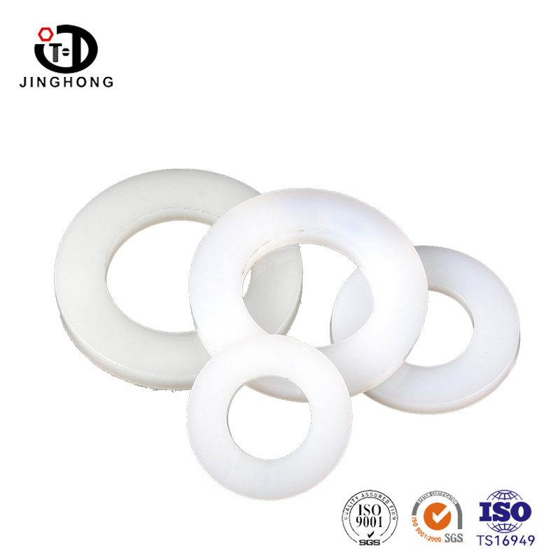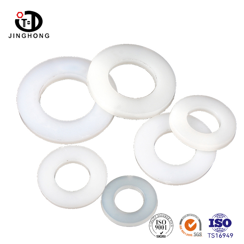 เครื่องซักผ้าไนลอนพลาสติกสีขาวทำจากวัสดุไนลอนซึ่งมีความต้านทานแรงดึงสูงและความต้านทานการสึกหรอสูง มันสามารถรักษาความสมบูรณ์และการทำงานของปะเก็นแม้ภายใต้แรงเสียดทานบ่อยครั้งและเงื่อนไขการโหลดหนักซึ่งยืดอายุการใช้งาน และมีระดับการหล่อลื่นในระดับหนึ่งซึ่งสามารถลดแรงเสียดทานได้ เมื่อเทียบกับเครื่องซักผ้าโลหะและแผ่นแบนไนลอนมีน้ำหนักเบากว่าซึ่งเอื้อต่อการลดน้ำหนักโดยรวม