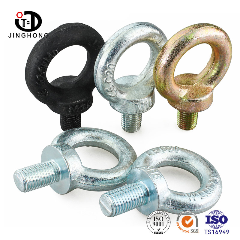 สลักเกลียวตาที่ชุบสังกะสีมีการออกแบบที่ไม่เหมือนใครด้วยรูตาแบบวงกลมซึ่งใช้ในการเชื่อมต่อเชือกโซ่หรืออุปกรณ์ยกอื่น ๆ และใช้กันอย่างแพร่หลายในเขตอุตสาหกรรมเช่นการยกการยกการลากและการตรึง